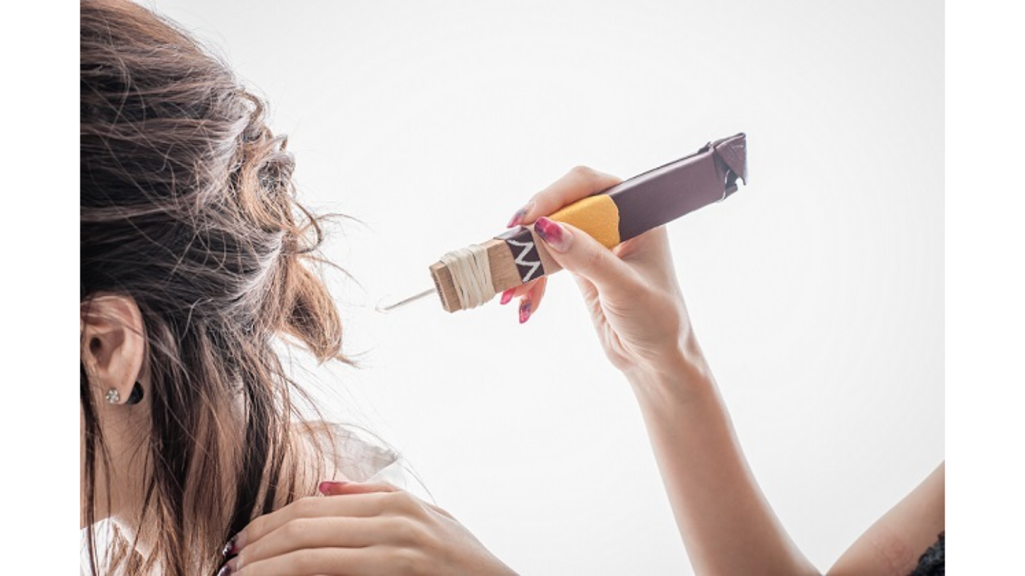 6.DNAアクティベーション。クリスタルワンドにより後頭部から背中にかけて光を注入。しばらく座りながらの施術となりますので、目を閉じてリラックスしていてください。